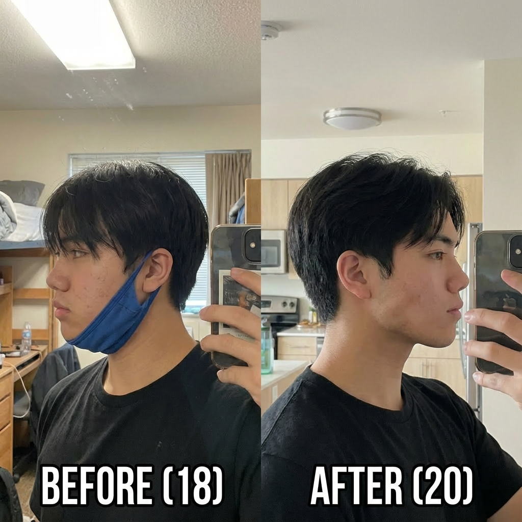 I didn’t think this would actually do anything, but after using it consistently at night I noticed my face looked way less puffy in the morning. My jawline looks sharper in pictures and I feel way more confident. Super comfortable too I forget I’m even wearing it.